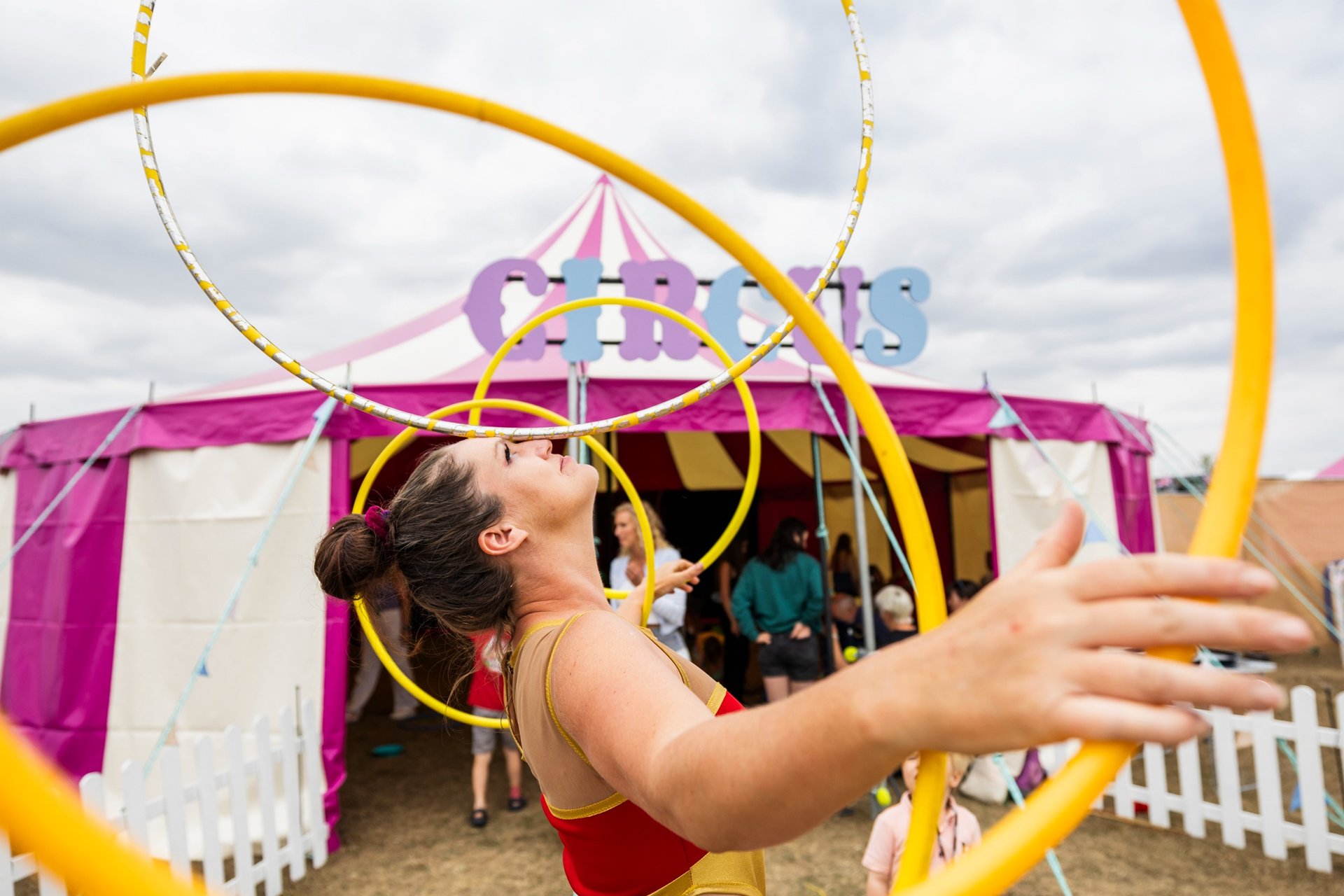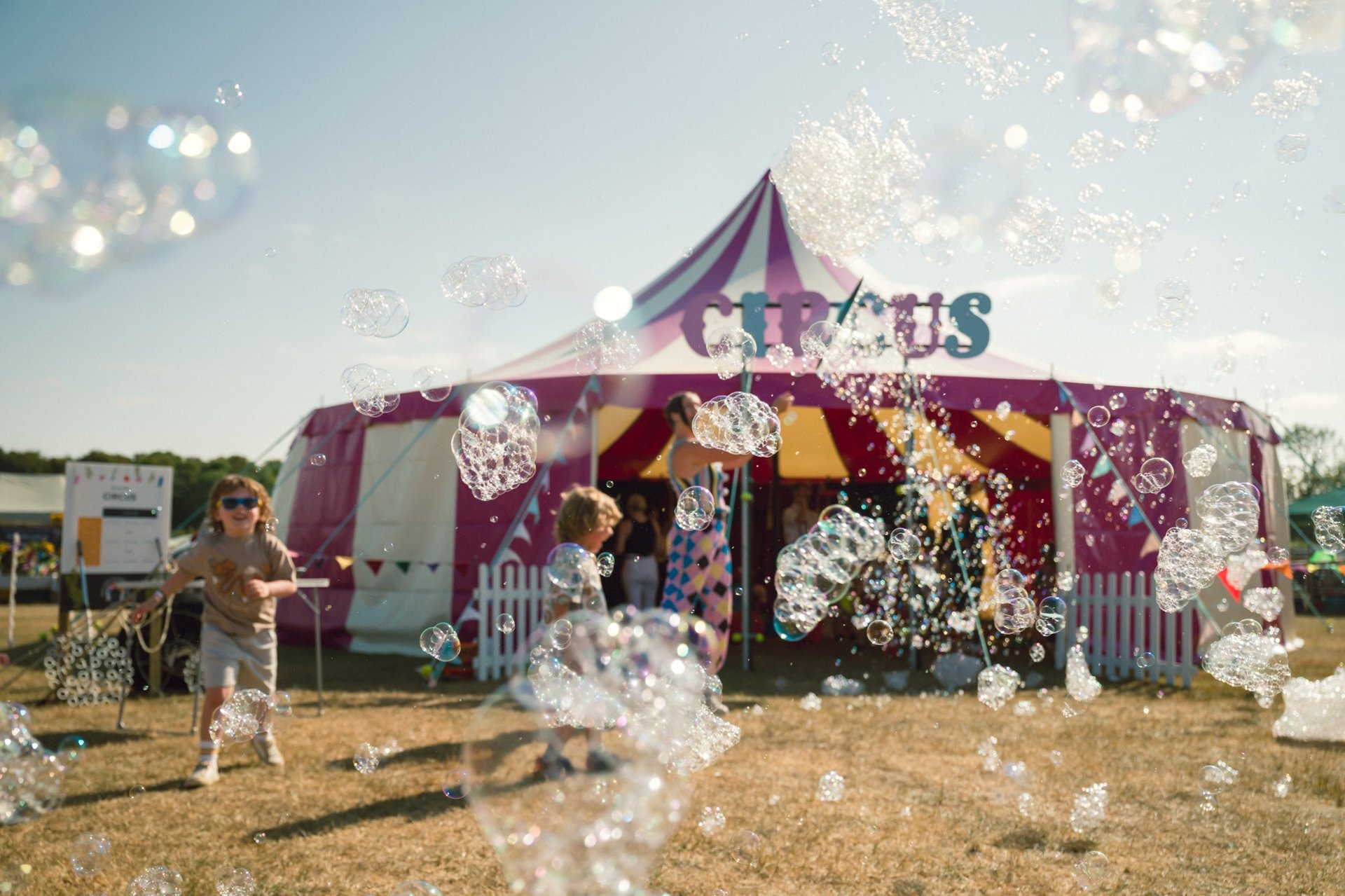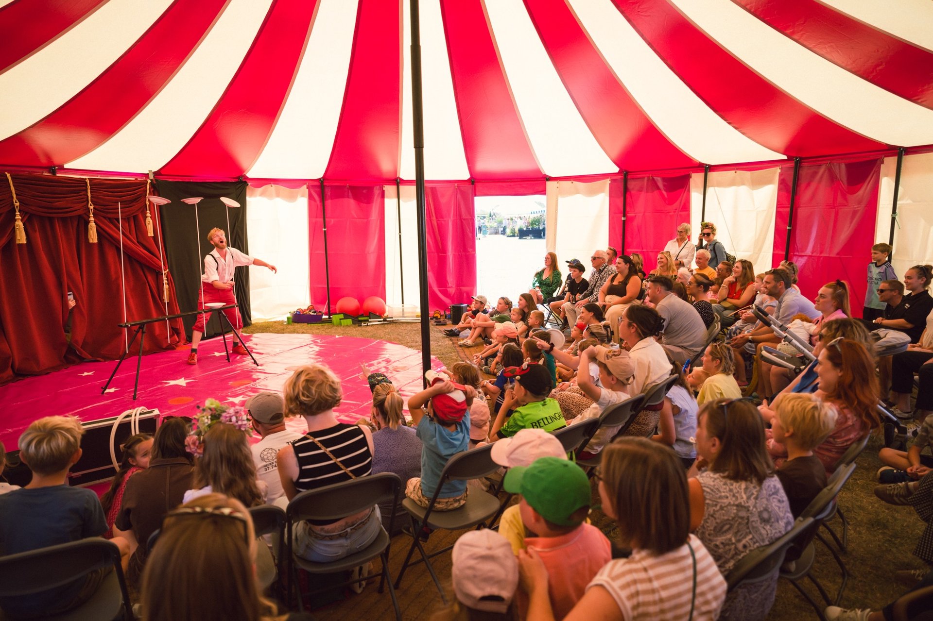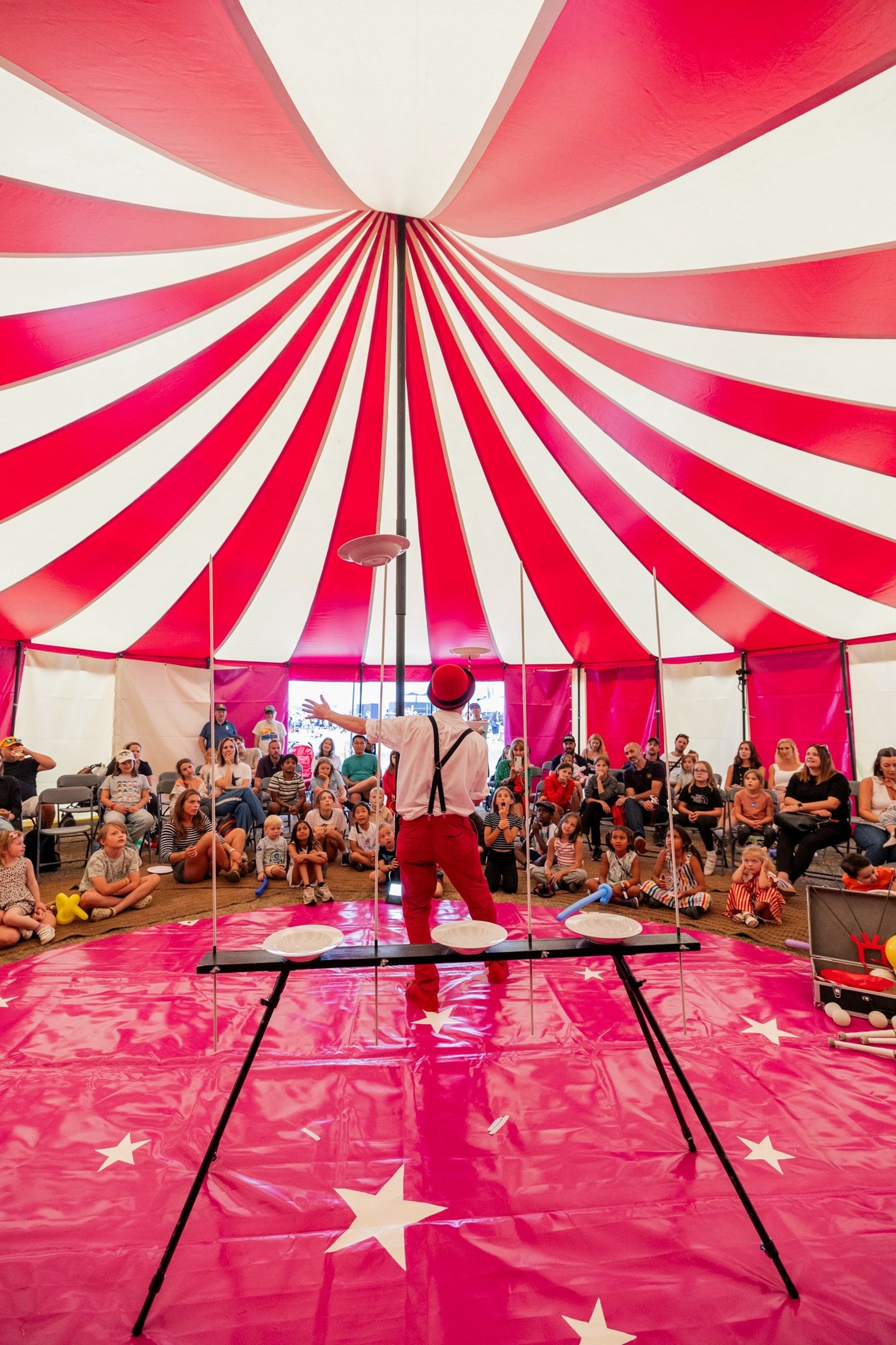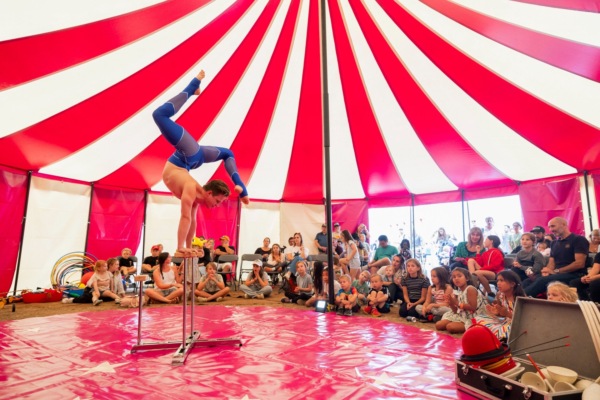 Bring the magic of the circus to your event with our Big Top Tent — perfect for festivals, schools, PTA fundraising events, community gatherings, corporate parties, and more. Our vibrant tent creates the ultimate centrepiece for unforgettable entertainment, featuring live shows, circus workshops, giant bubbles, stilt walking, and much more.
