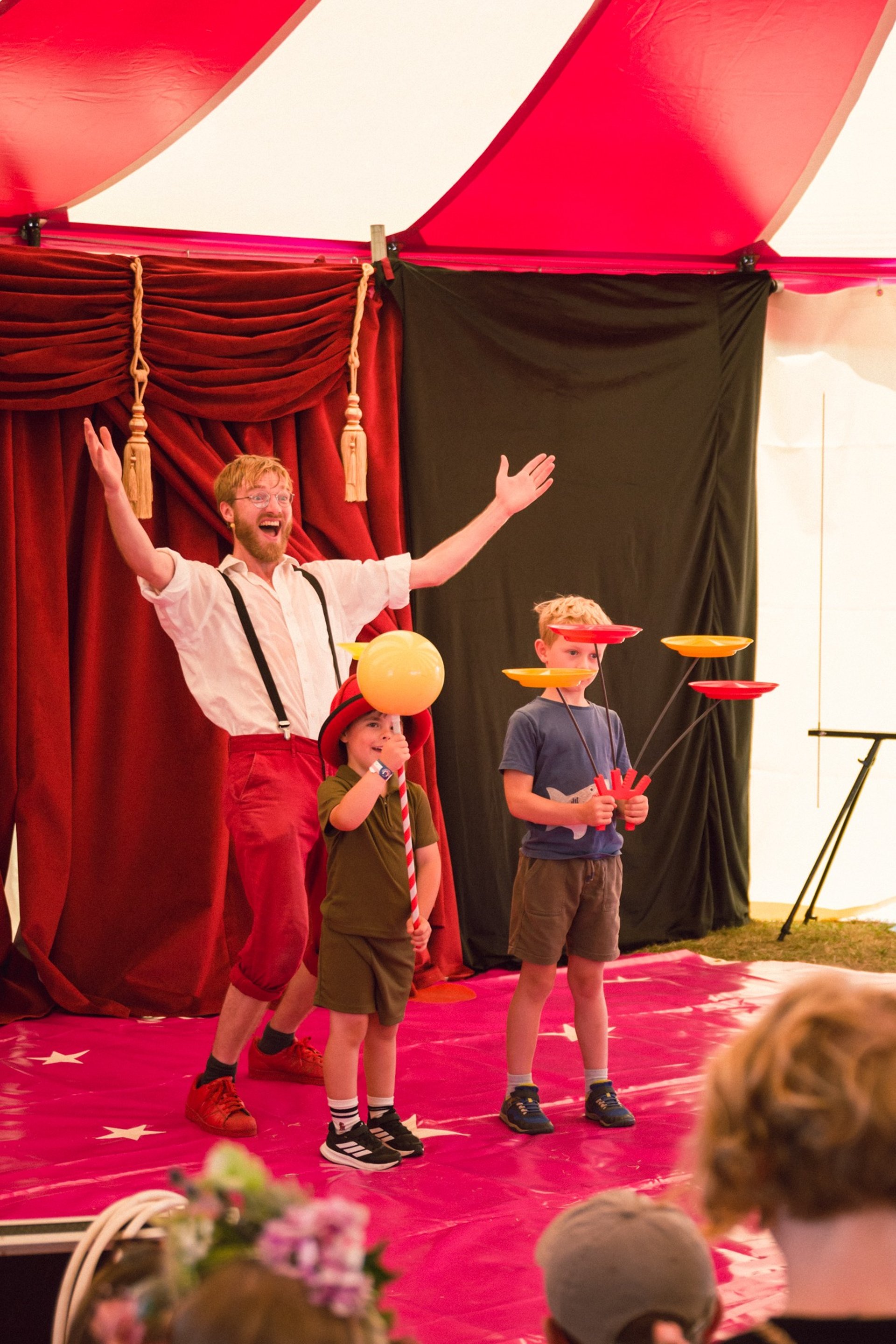 For schools, we offer special circus days with engaging shows and interactive workshops that inspire curiosity, creativity and lots of smiles, all hosted under the unique atmosphere of our big top tent. Our sessions are designed to be inclusive, age-appropriate and engaging, giving pupils a chance to learn, participate and be entertained in a memorable setting.